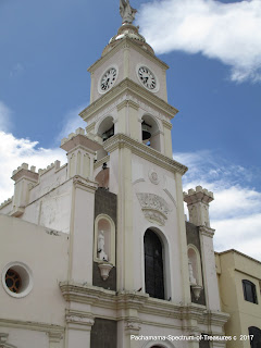 With its religious origins from Catholic Lent, on the Saturday before Lent, there is a well attended outdoor mass at the Cathedral alongside Parque Montalvo. This Blessing of Flowers, Fruits and Bread, is held in front of the Cathedral by the bishop. A huge mural - depicting Jesus is constructed from flowers, fruits and bread is on display.